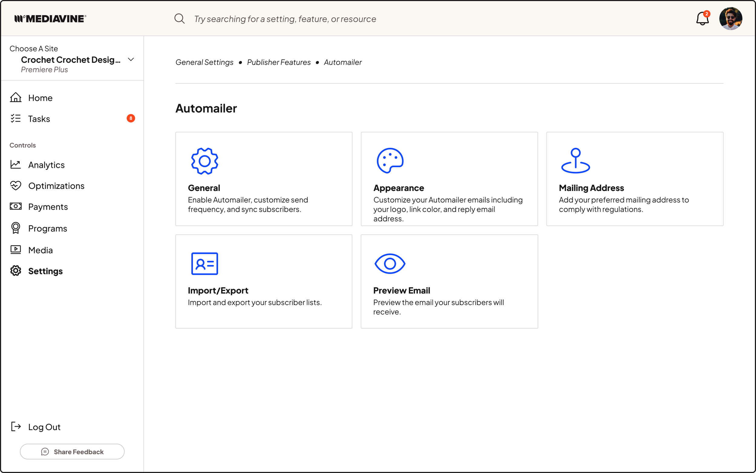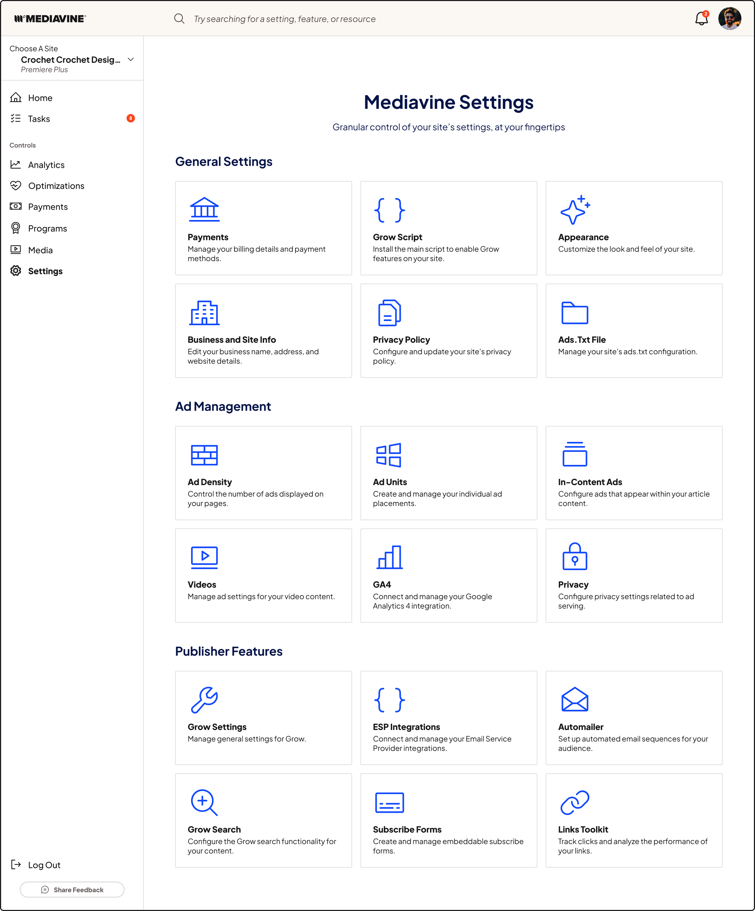 Mediavine has a lot of settings and customizability. And I mean a loooooot. And all of the settings were previously very loosely organized, with no search functionality, and no explanation or microcopy of what settings do. It felt more geared toward our support staff, who already knew what all of the settings did and where to find them, as opposed to our publishers.